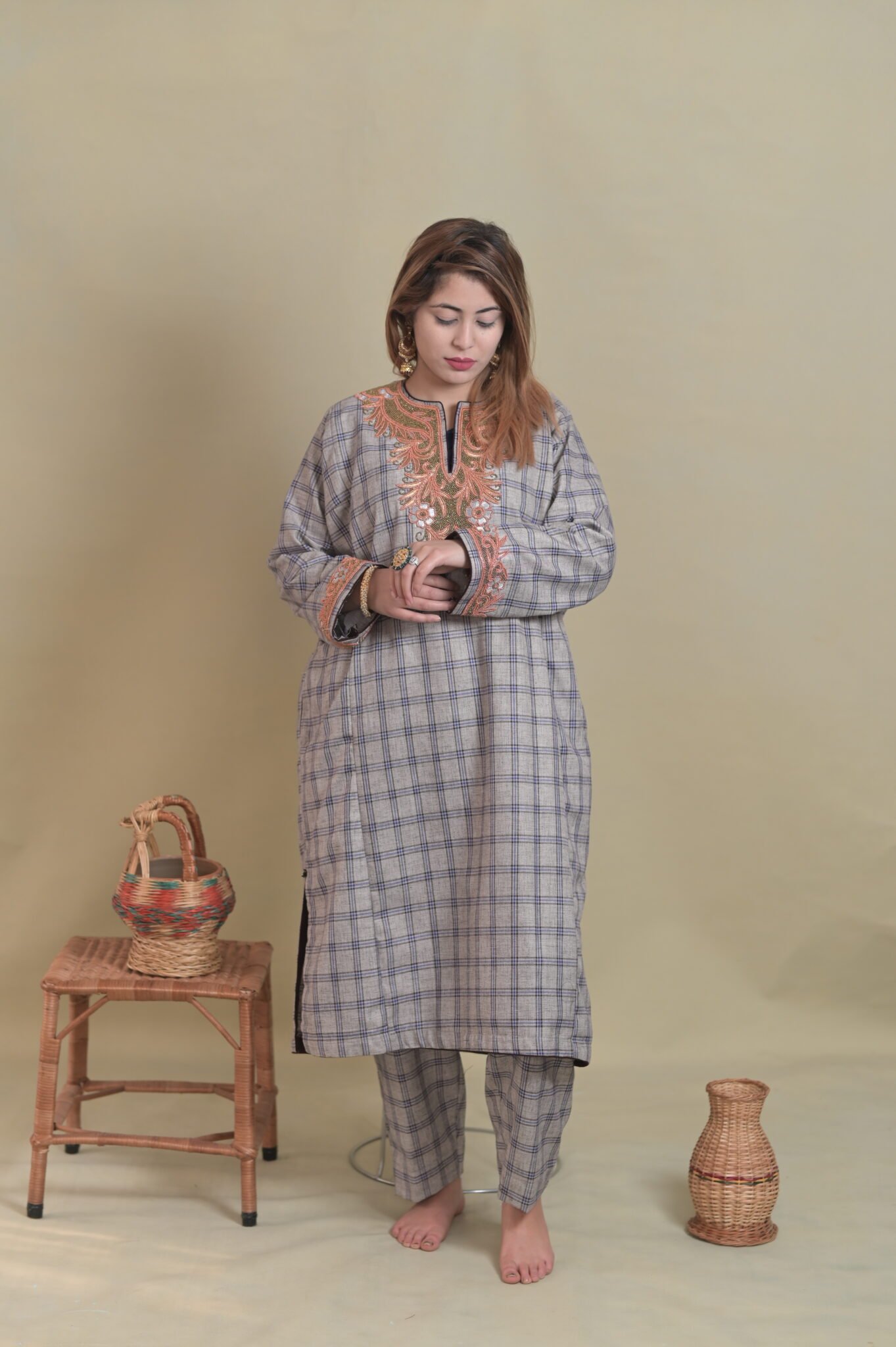 Experience the beauty of true craftsmanship with this handcrafted hand embroidered velvet pheran with woolen stole. Each piece is thoughtfully created to reflect quality, authenticity, and timeless appeal. Designed for those who appreciate fine artistry, it blends tradition with modern elegance. Ideal for personal use or as a meaningful gift, this product embodies premium workmanship and enduring style.